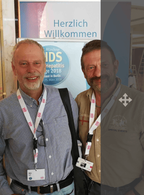 Counseling is first provided online, anonymously and free of charge. An answer will be given after 24 hours at the latest and will be continued by telephone if necessary. Engelbert (on the right in the picture), representing Siegi (not in the picture), has been advising on HIV therapy for 20 years, regularly attends the important HIV congresses and is a member of the German Expert Network HIV/Hepatitis e.V. and a board member of Projekt Information e.V. Engelbert has been HIV-positive for 34 years and has been taking HIV therapy for 24 years.