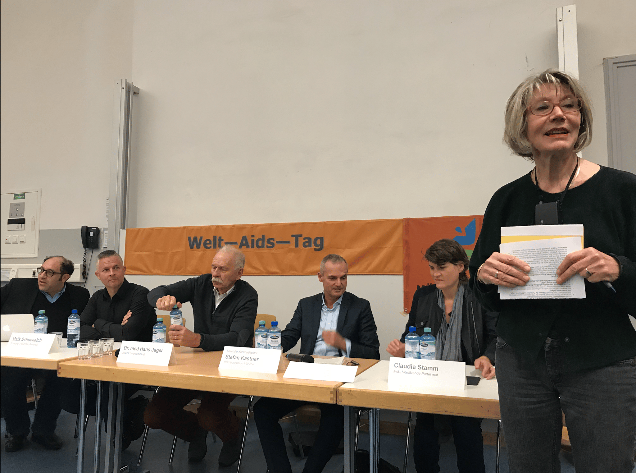 HIV-Schwerpunktarzt Dr. Helmut Hartl, die von Engelbert Zankel (Münchner Positive) geleitet wurde, zeigte sich ein großes Interesse an dem Thema beim Publikum. Insbesondere die Beschaffung der